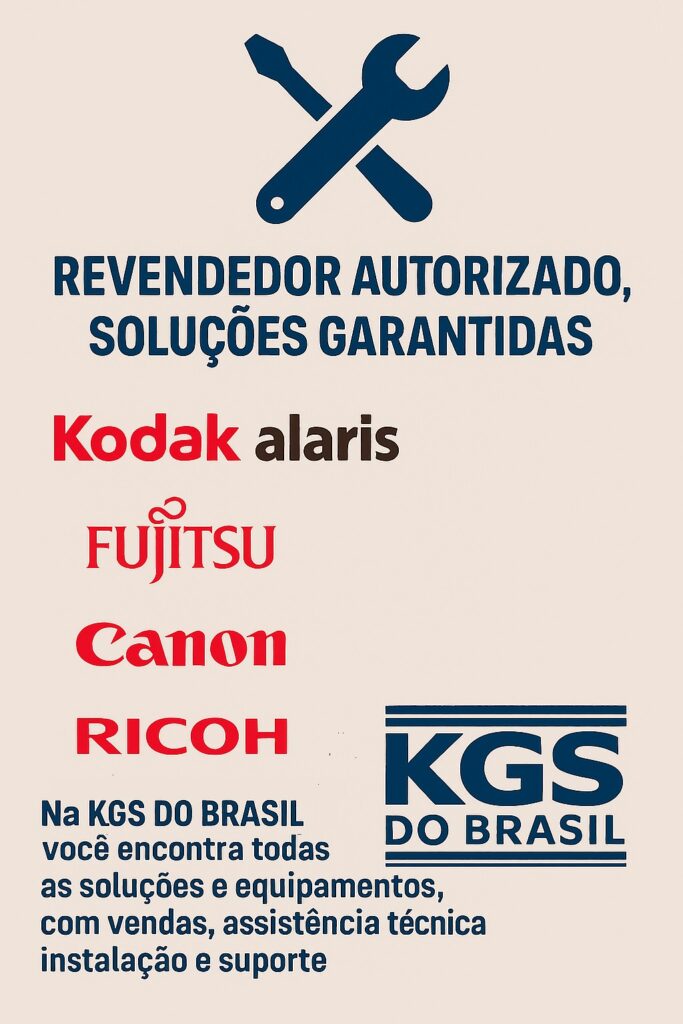 Como revendedor autorizado Canon, Kodak Alaris, Fujitsu e Ricoh, a KGS DO BRASIL oferece equipamentos com tecnologia de ponta e suporte especializado.