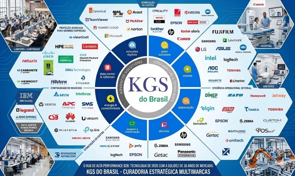 A KGS DO BRASIL atua como Revendedora Autorizada Multimarcas, fornecendo a curadoria das melhores soluções globais para o seu negócio. Ressaltamos que a responsabilidade técnica, garantias de hardware e eventuais danos ou prejuízos decorrentes do funcionamento dos equipamentos são de exclusiva responsabilidade de seus respectivos fabricantes. Nosso compromisso é conectar sua empresa à tecnologia de ponta e oferecer suporte comercial especializado para a melhor escolha de sua infraestrutura.